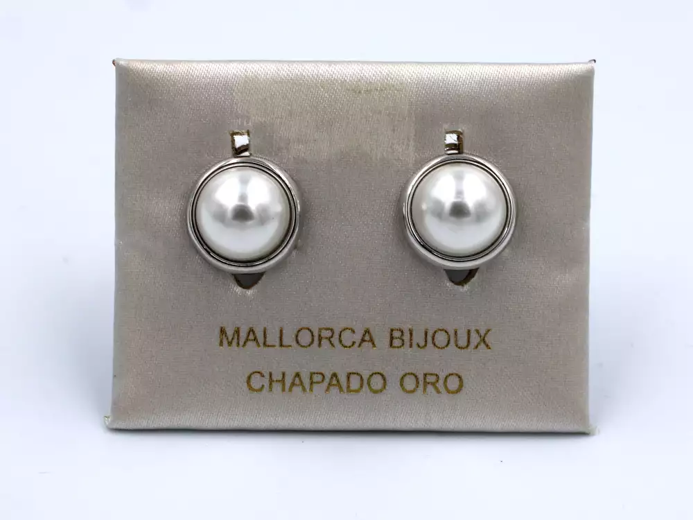 ARETE MEDIA PERLA ROJO BISEL DORADO 14MM