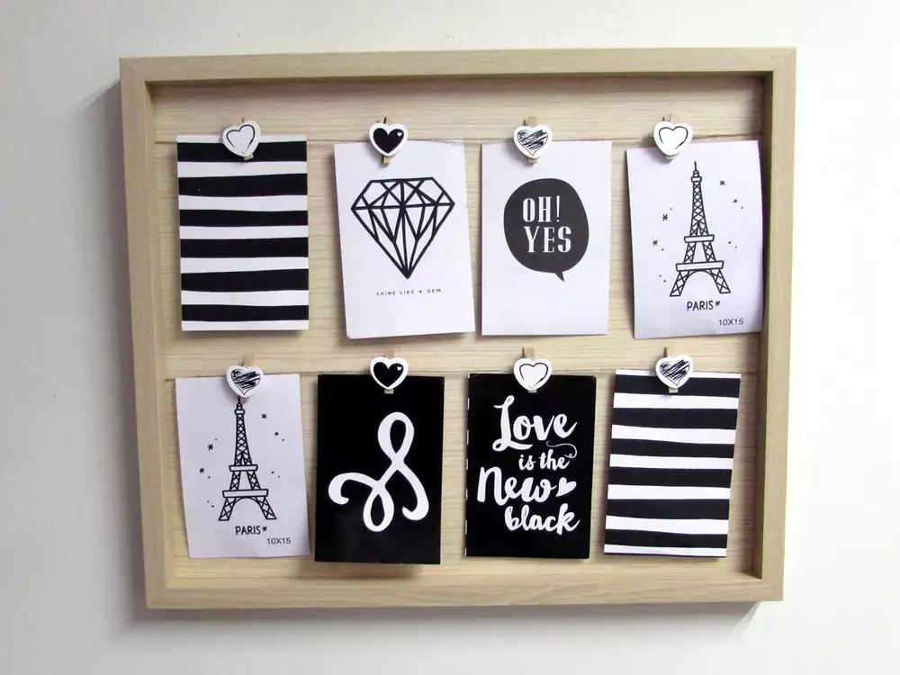 OS211 PORTARRETRATO MAD C/HILO Y CLIP CORAZON 8 FOTOS