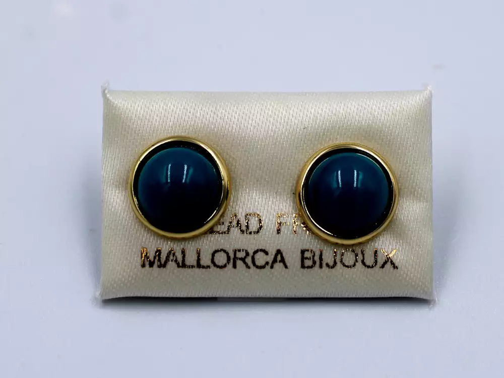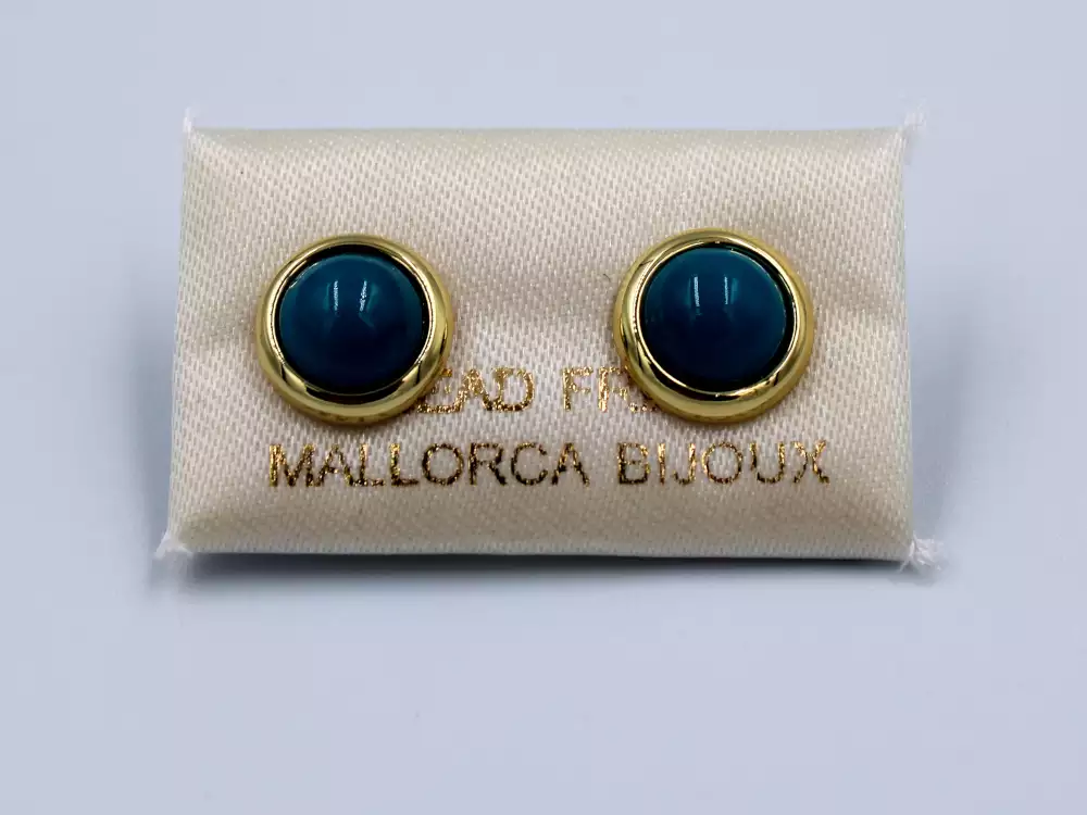 ARETE MEDIA PERLA TURQUESA BISEL DORADO 10MM