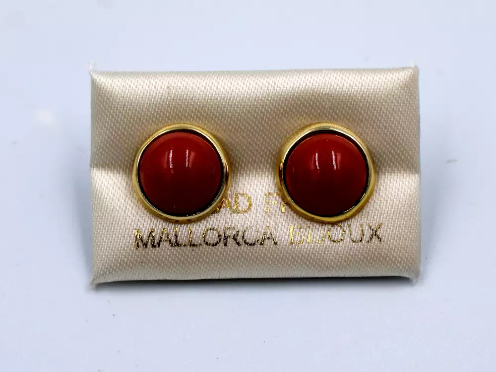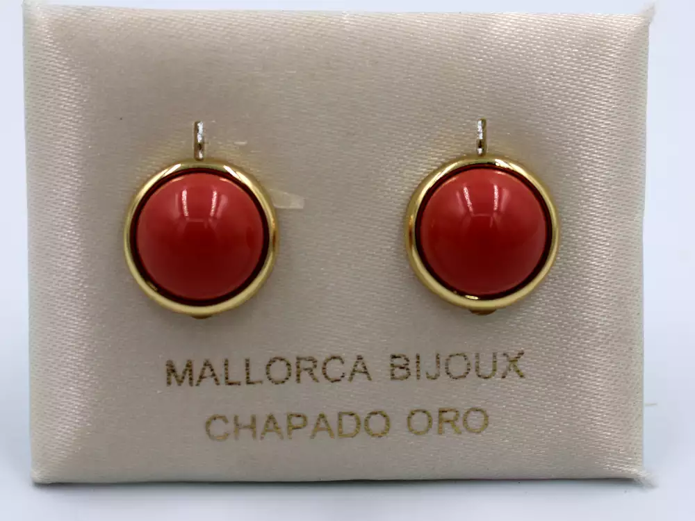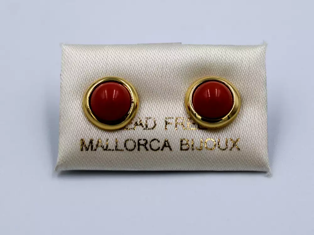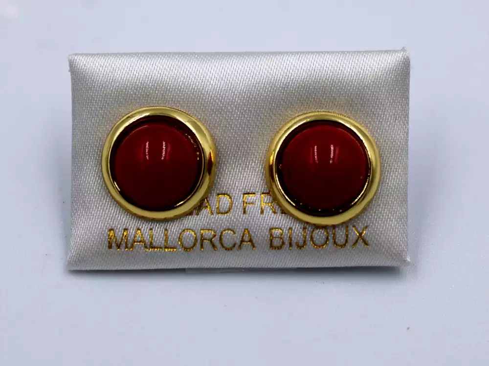 ARETE MEDIA PERLA ROJO BISEL DORADO 12 MM