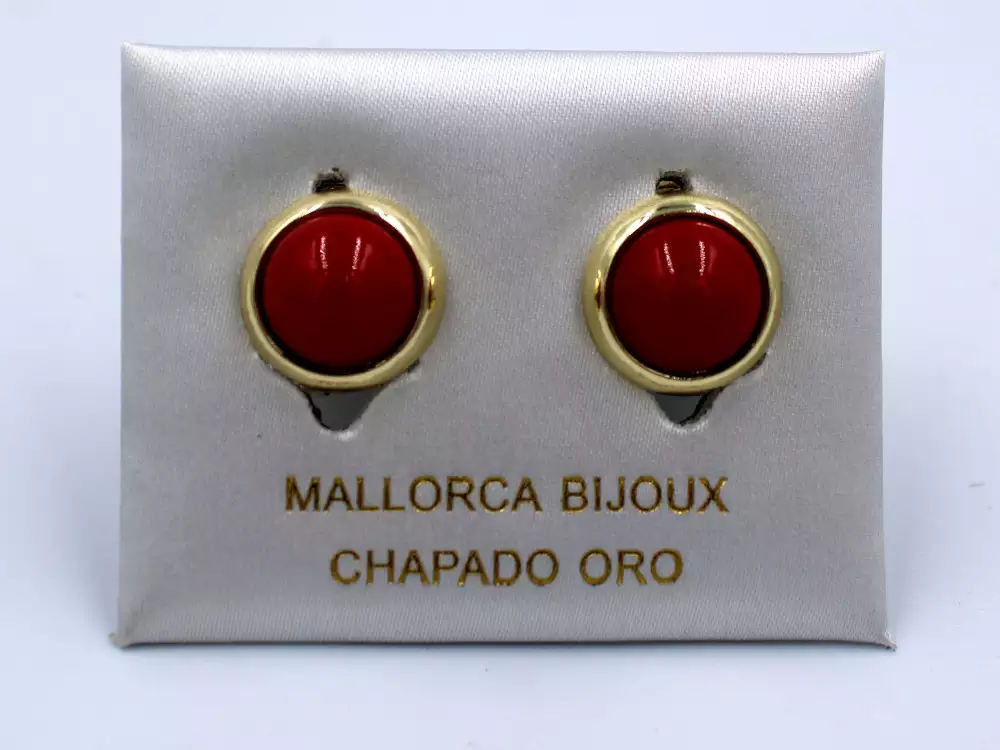 ARETE MEDIA PERLA ROJO BISEL DORADO 10MM