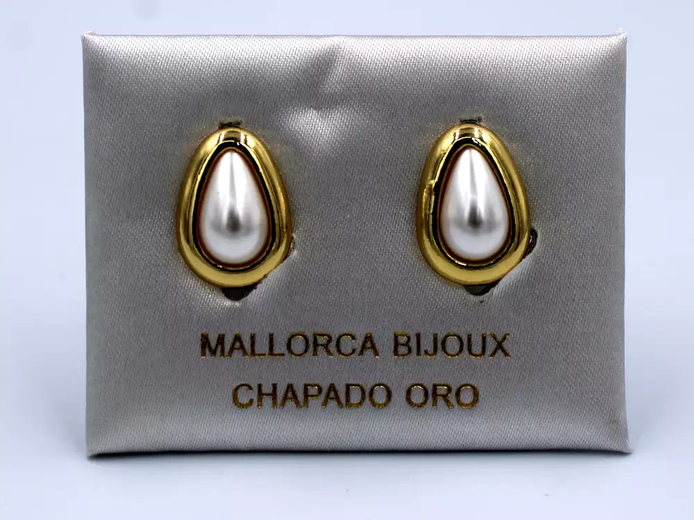 ARETE MEDIA PERLA CORAL BISEL DORADO 12MM