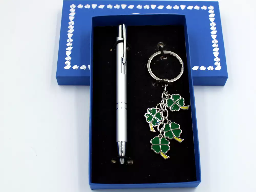 JGO PLUMA Y LLAVERO 4 TREBOLES EN ESTUCHE