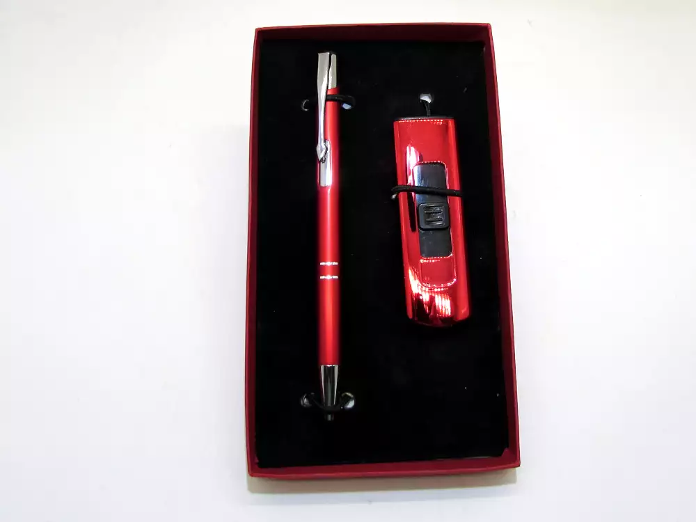 JGO DE PLUMA Y ENCENDEDOR USB COLOR ROJO ó AZUL AN110